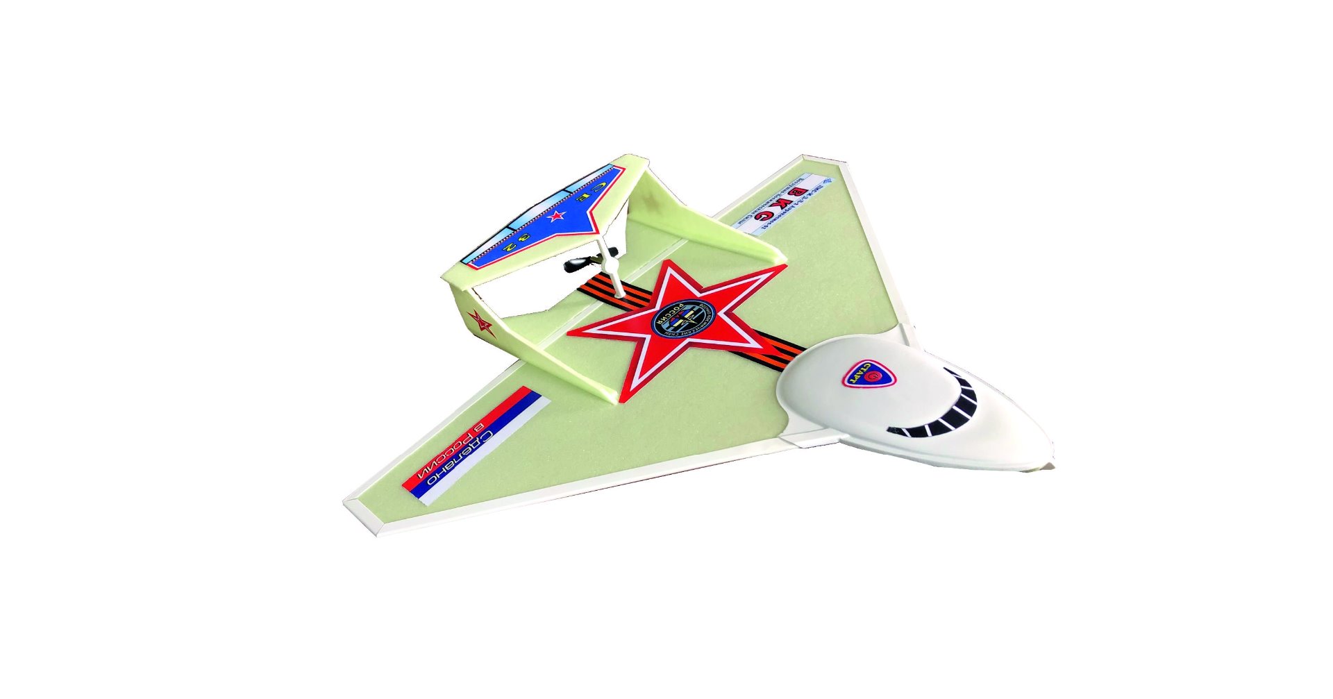 Выпускается в двух вариантах. В отличие от других моделей у него более внушительные размеры, летает он медленно и плавно. 1 вариант запускается толчком с руки или катапульты, а 2 вариант имеет винтомоторную электрическую установку, бортовой аккумулятор и зарядное устройство в комплекте. Чтобы модель далеко не улетела специальный выключатель через определённое время останавливает работу мотора.