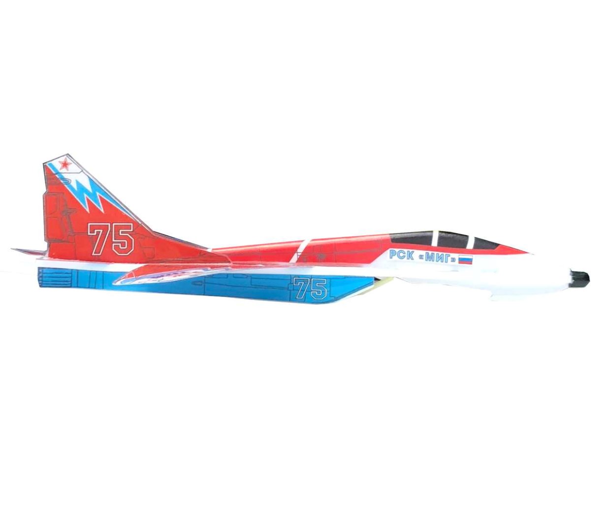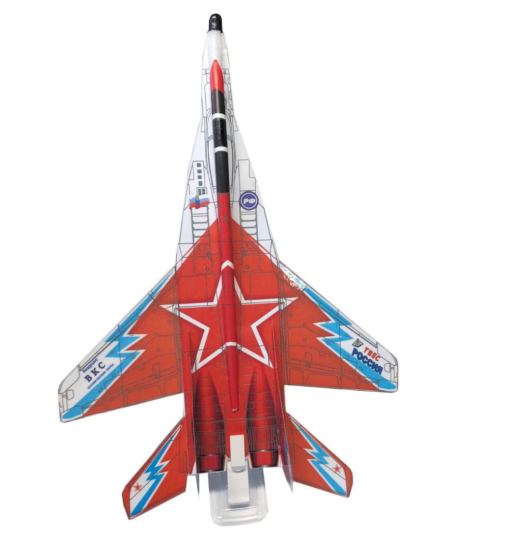 Модель является копией самолета МИГ-29, запускается с помощью катапульты с резиновым шнуром, входящей в комплект. Траектория полета зависит от наклона катапульты или самолета. Для того, чтобы модель сделала петлю Нестерова нос самолета надо приподнять вверх перед запуском, а для планирования держать катапульту горизонтально и слегка вверх.
